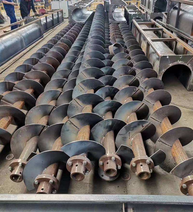 螺旋葉片主要用于輸送粘度較大和可壓縮性物料,這種螺旋面型,在完成輸送作業(yè)過程中,同時具有并完成對物料的攪拌、混合等功能。螺旋輸送機(jī)的螺旋葉片有實(shí)體螺旋面、帶式螺旋面和葉片螺旋面三種形式。